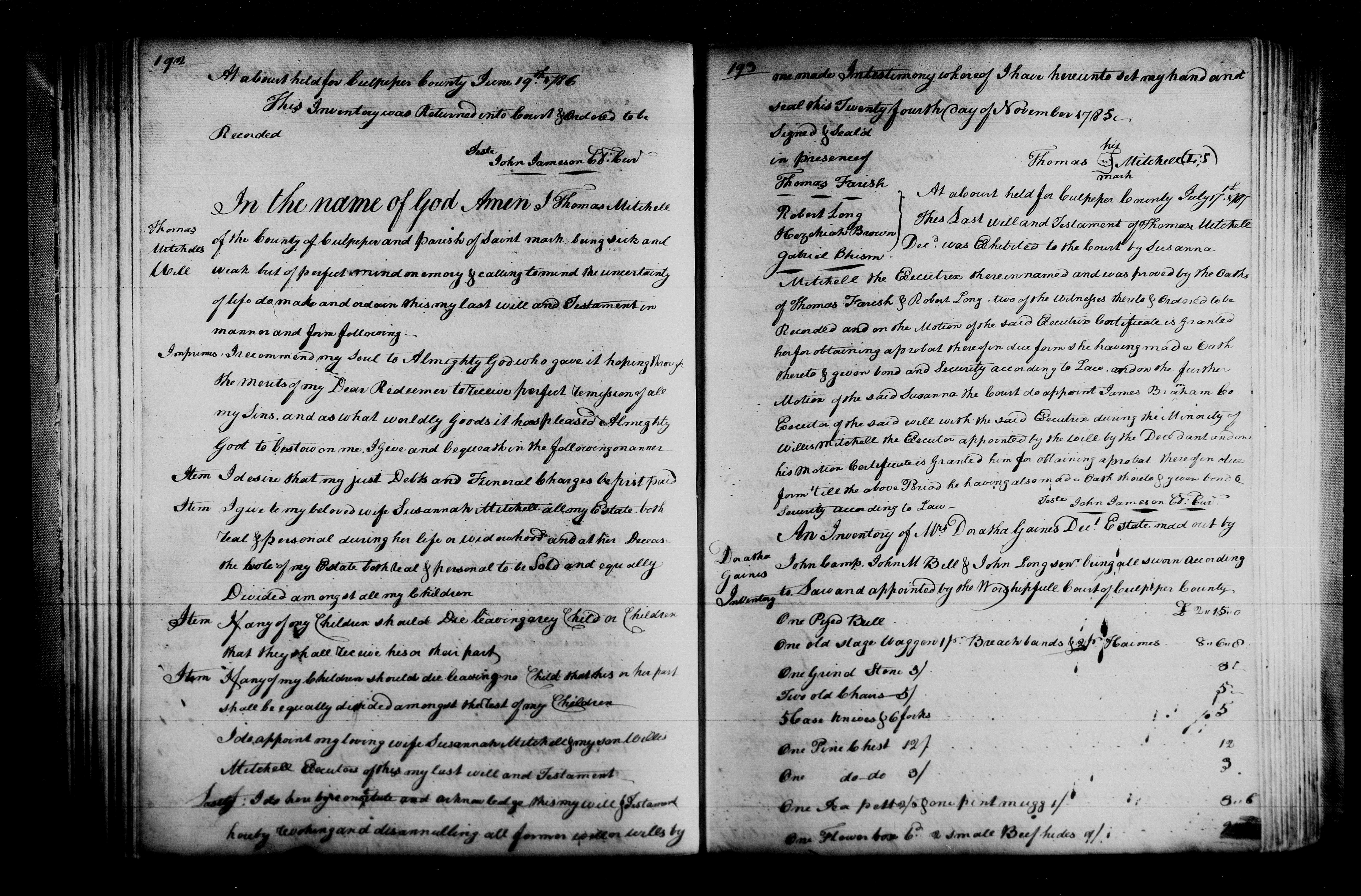 I Thomas Mitchell of the county of Culpeper and parish of Saint Mark... last will and testament...