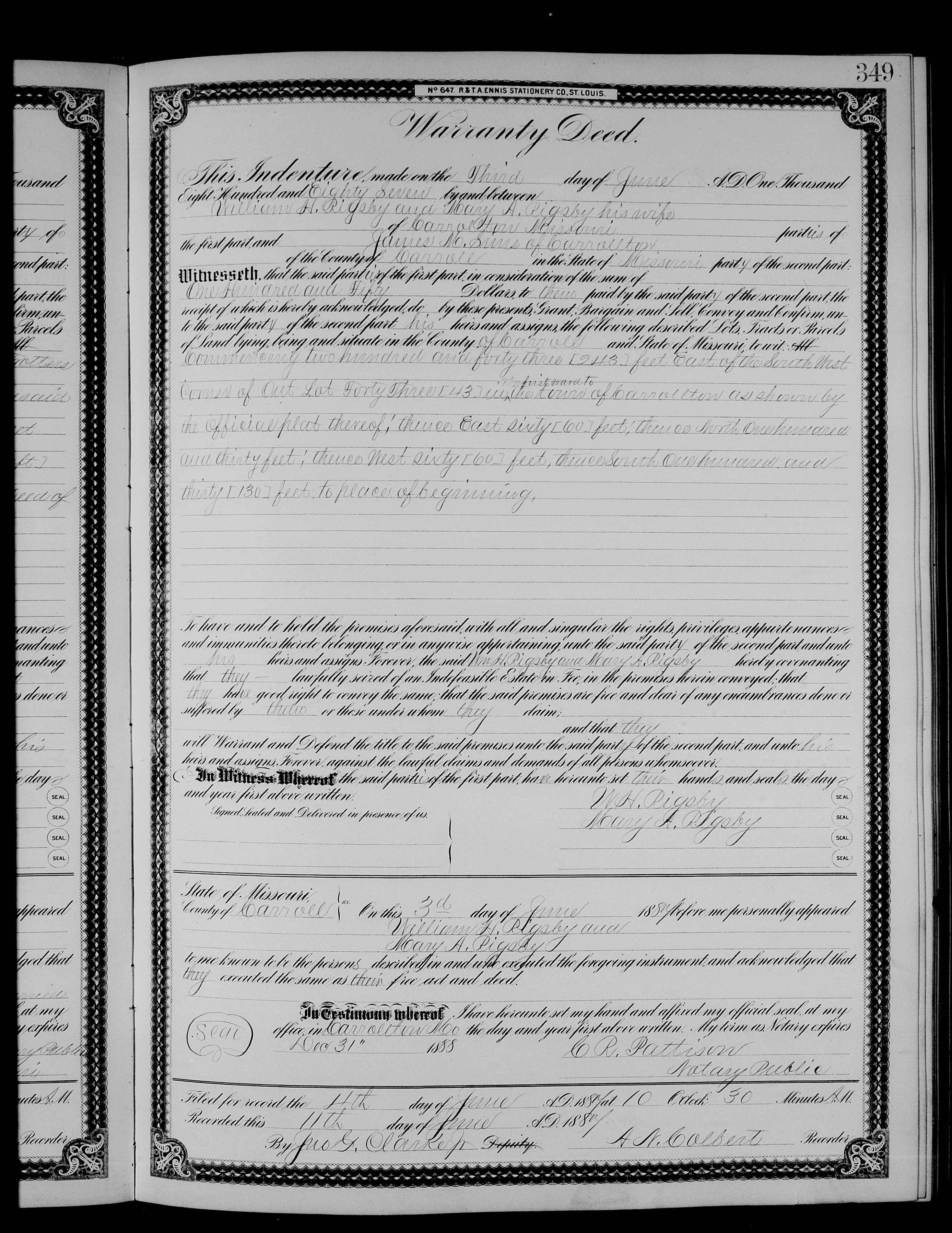 1887-06-03 William H Rigsby and wife Mary A to James M Sims; land in Carrol Co; $150