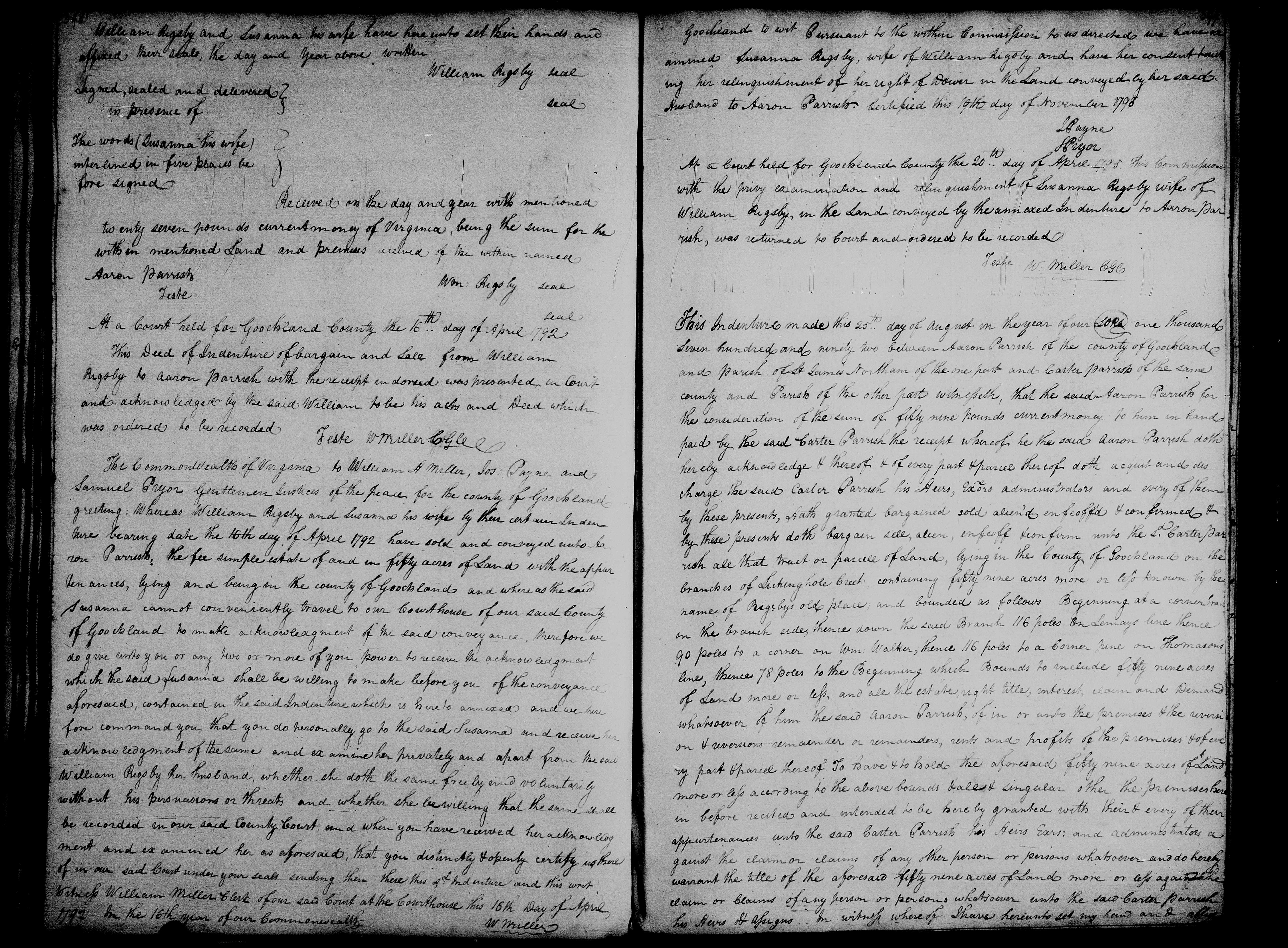 1792-04-16 William Rigsby and wife Susannah of St James Parish to Aaron Parrish of same; 50 acres on Licking Hole Creek; L27