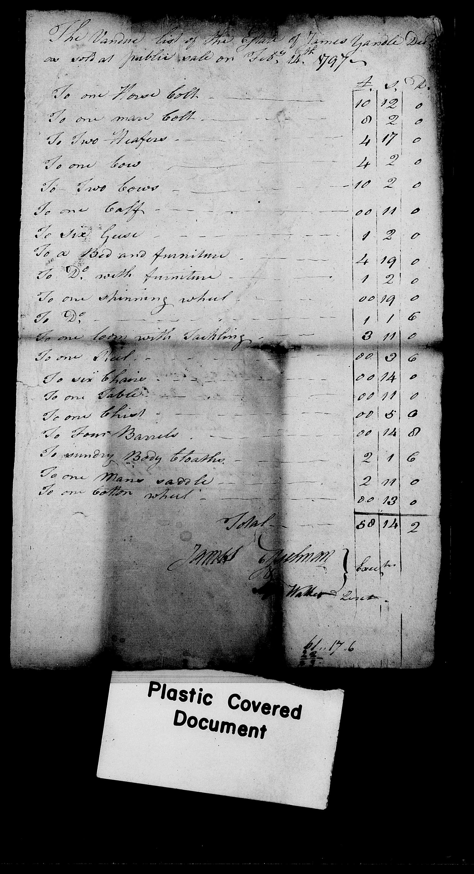 as sold at public sale on Feb 14, 1797