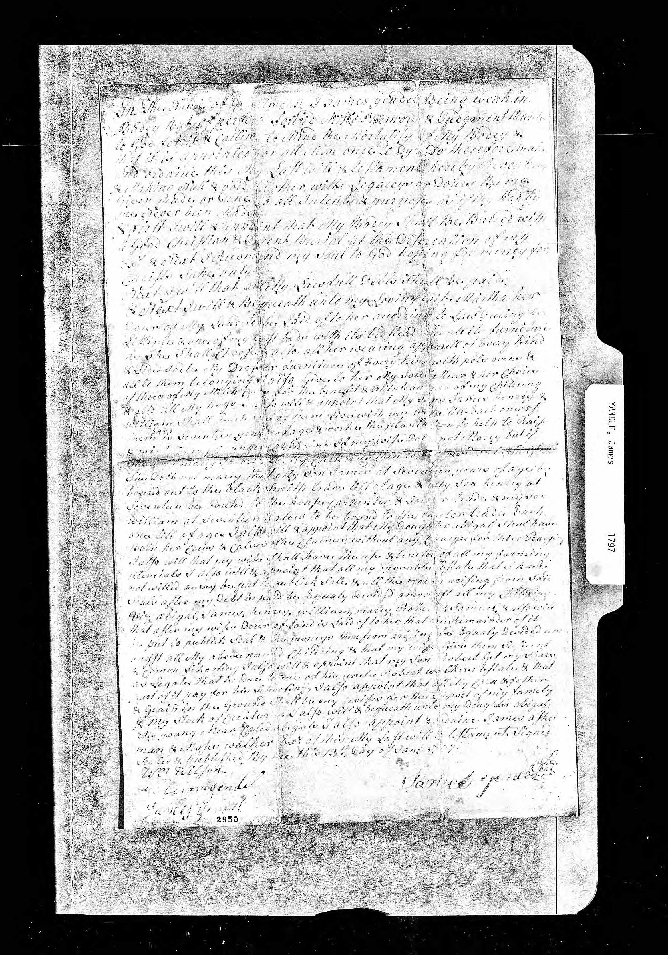 will & testament of the said Js Yandle among[?] the widows