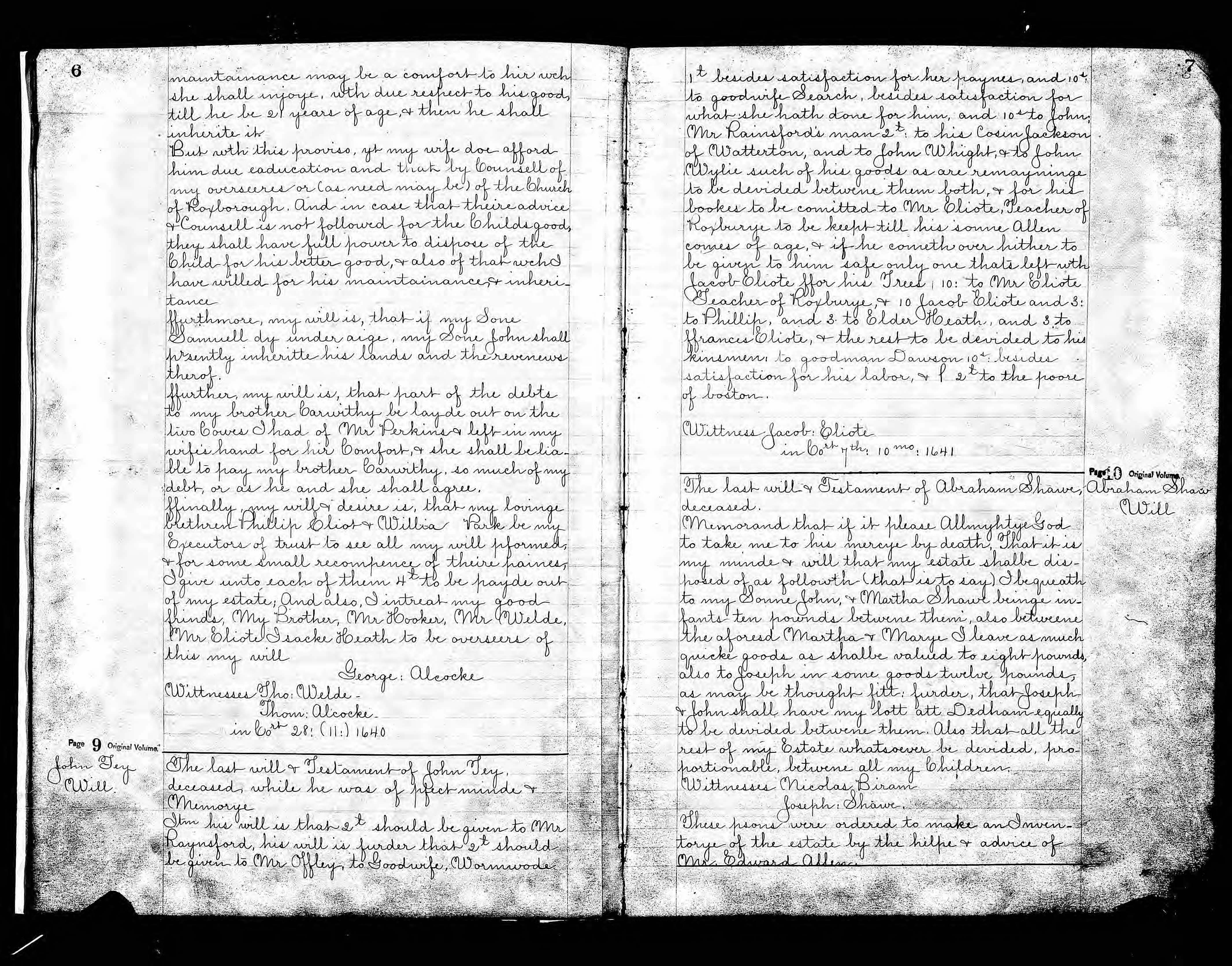 may be thought fitt: furder, that Joseph & John shall have my lott att Dedham equally