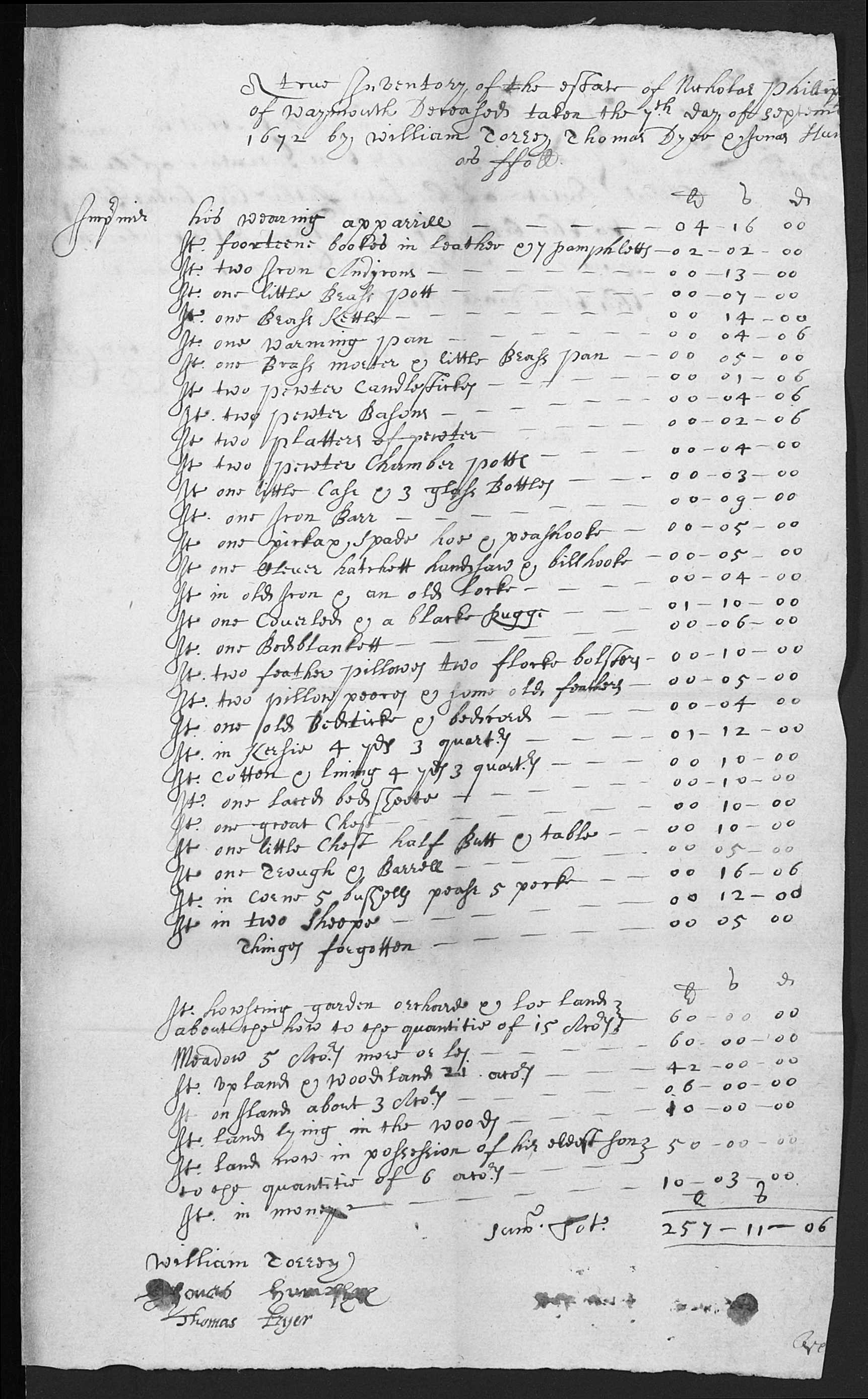 Here is the inventory of his estate, totalling 257.11.06