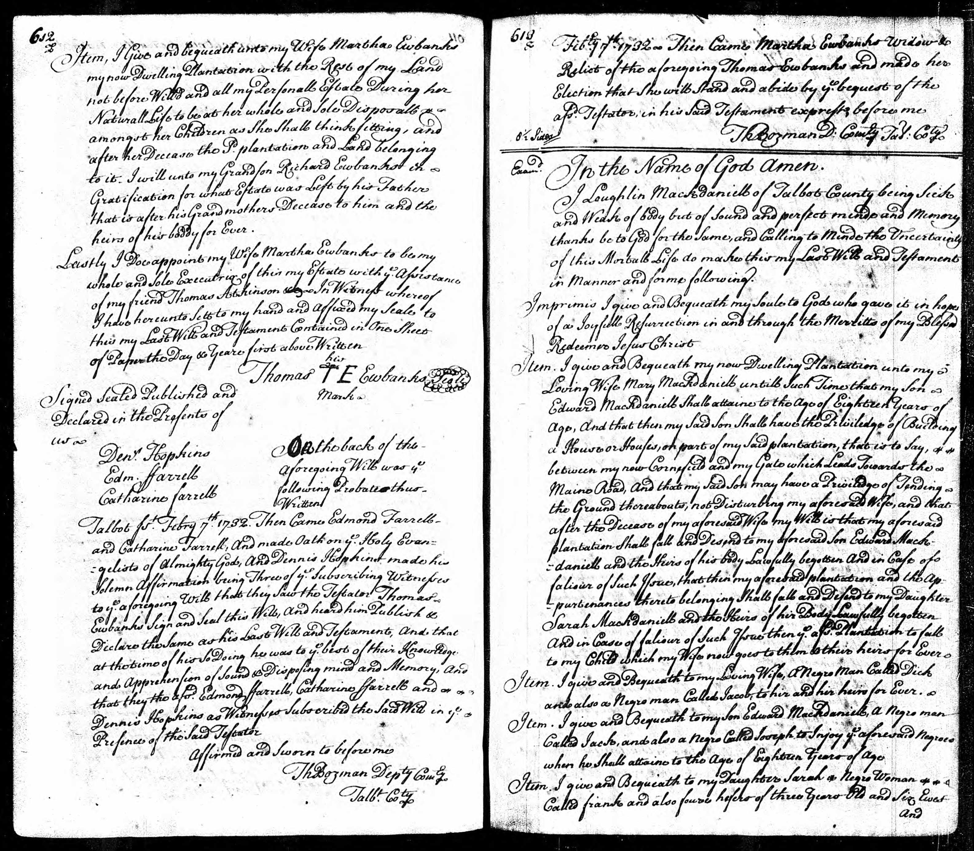 Thomas Ewbanks, planter,Talbot Co, 22nd Sept 1732;