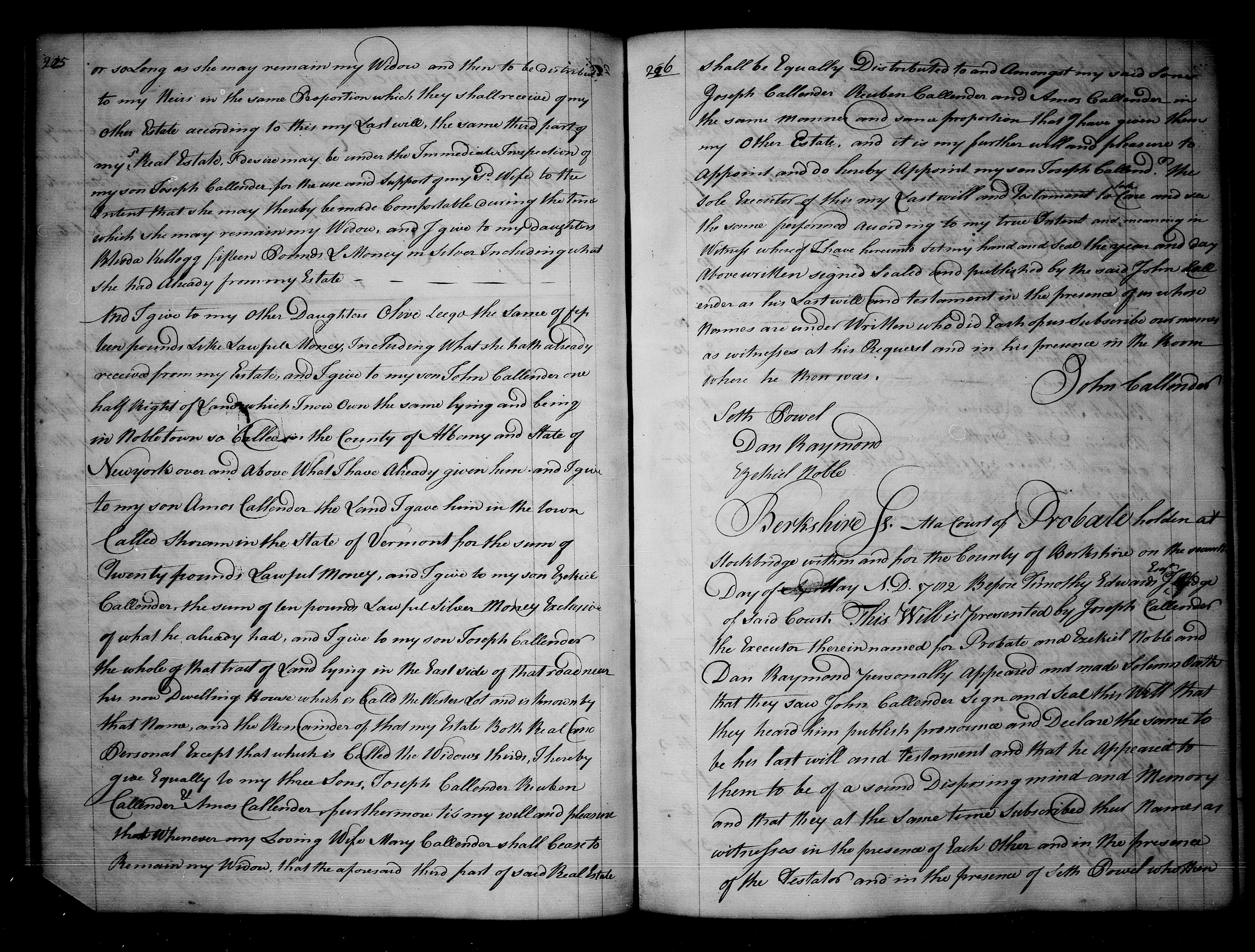 to my son Amos Callender the land I gave him in the town called Sharon in the state of Vermont...